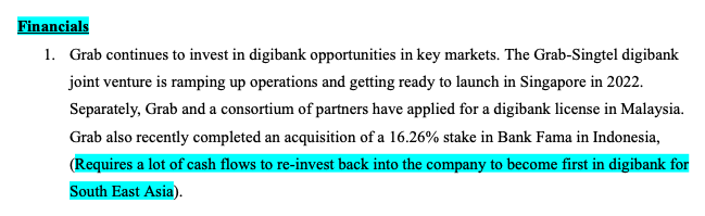 As the Grab needs cash to fund their future acquisition and new operating business (Jaya, DigiBank and etc).