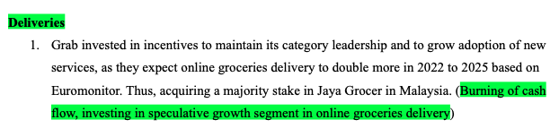 Investing in new segment = more money being spent. Just to be clear, GRAB is not profitable as whole in the company!
