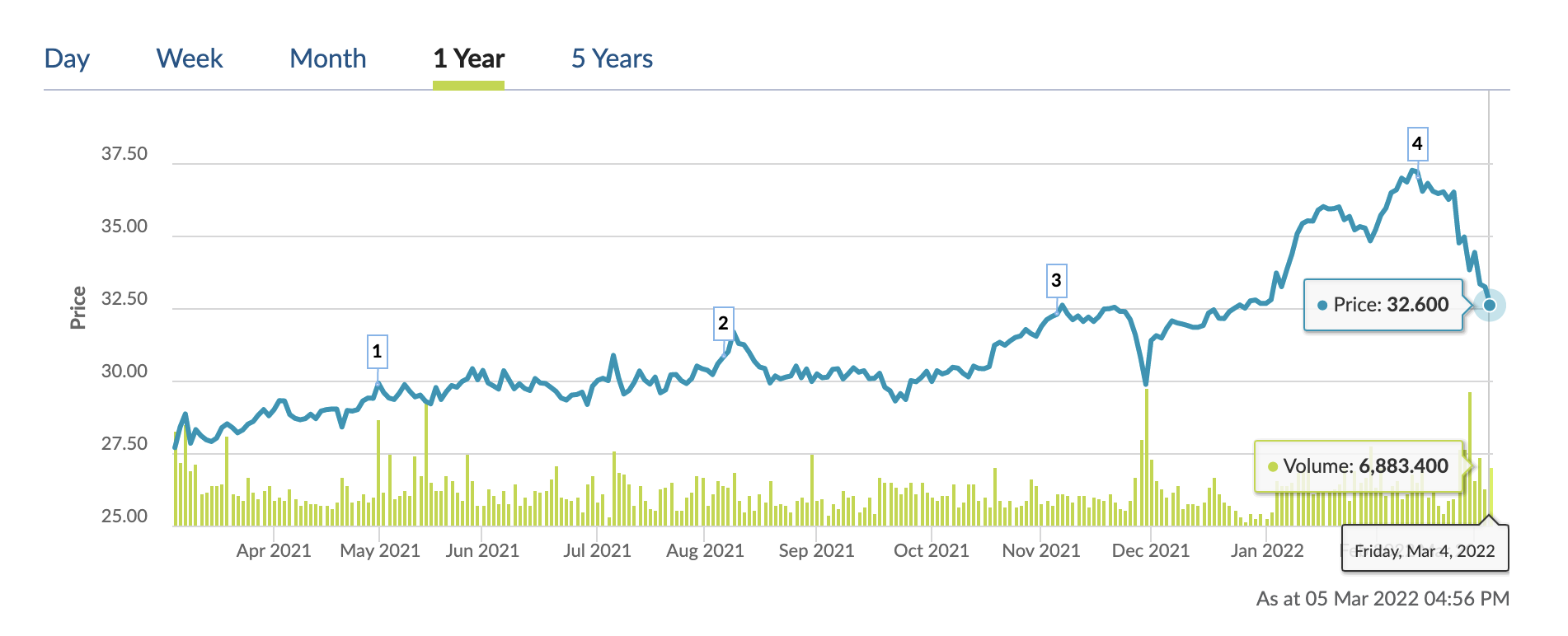 Currently, DBS is trading at $32.60, giving it a market capitalisation of close to $84.3 billion. Over the past 12 months, DBS share price has increased by about 17.7%.