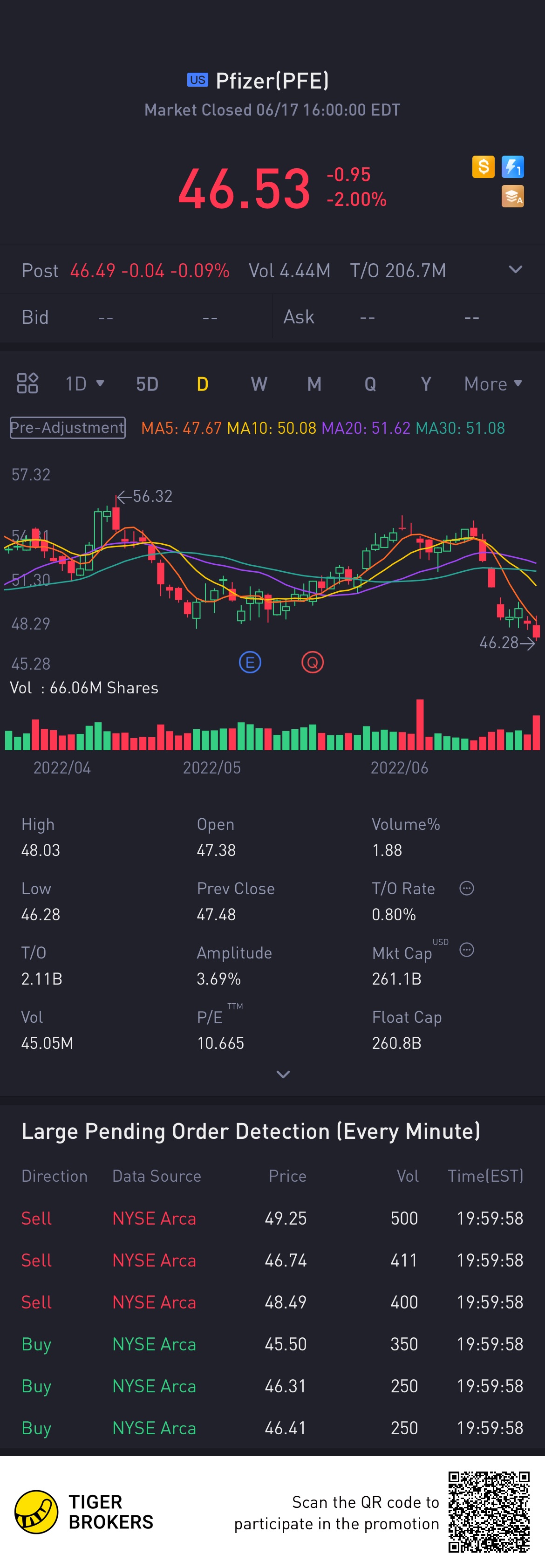 $Pfizer(PFE)$Selling in May and going away would have done it's magic for this one. In thiskind of macro, whether growth or dividend play all gets crushed
