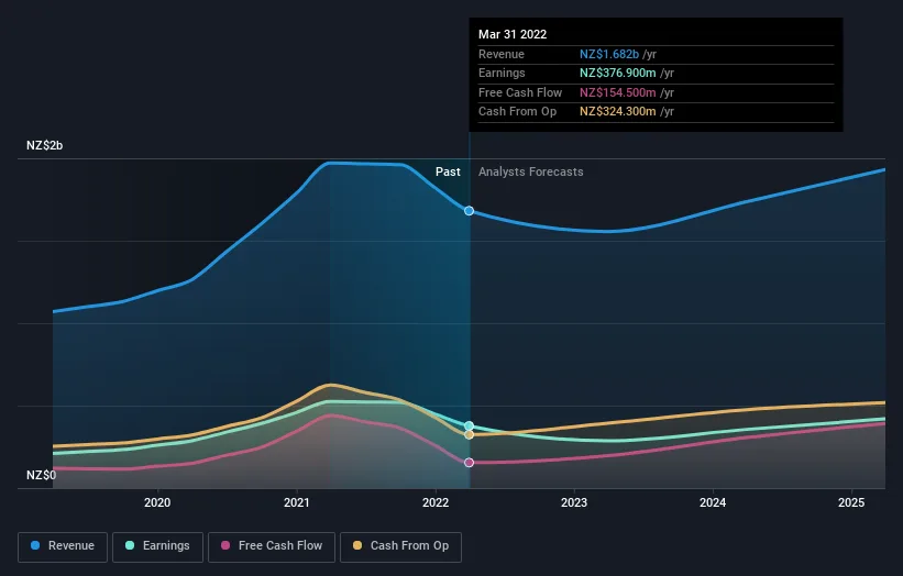 We can see that Fisher & Paykel Healthcare does have institutional investors; and they hold a good portion of the company's stock. This can indicate that the company has a certain degree of credibility in the investment community. However, it is best to be wary of relying on the supposed validation that comes with institutional investors. They too, get it wrong sometimes. When multiple institutions own a stock, there's always a risk that they are in a 'crowded trade'. When such a trade goes wrong, multiple parties may compete to sell stock fast. This risk is higher in a company without a history of growth. You can see Fisher & Paykel Healthcare's historic earnings and revenue below, but keep in mind there's always more to the story.