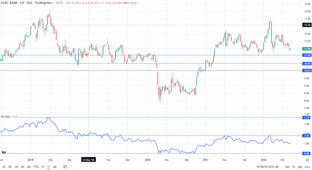 Which bank is at the good entry point? Frankly speaking - all! All the banks wave down and PB ratio is below 5 years average. I attached OCBC as a reference. But you know SG banks are very expensive. I still want to get good bargin. ๐คฃ. I am looking at $11.08 and not sure how long I will wait! ๐