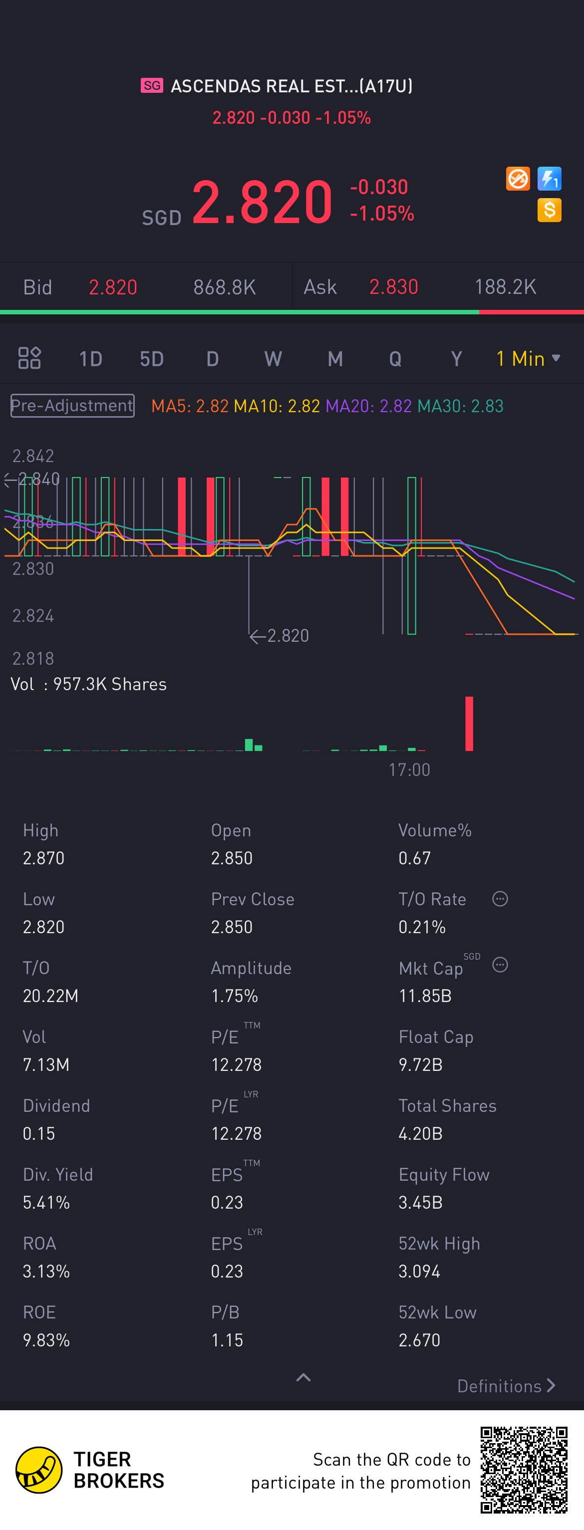 $ASCENDAS REAL ESTATE INV TRUST(A17U.SI)$.