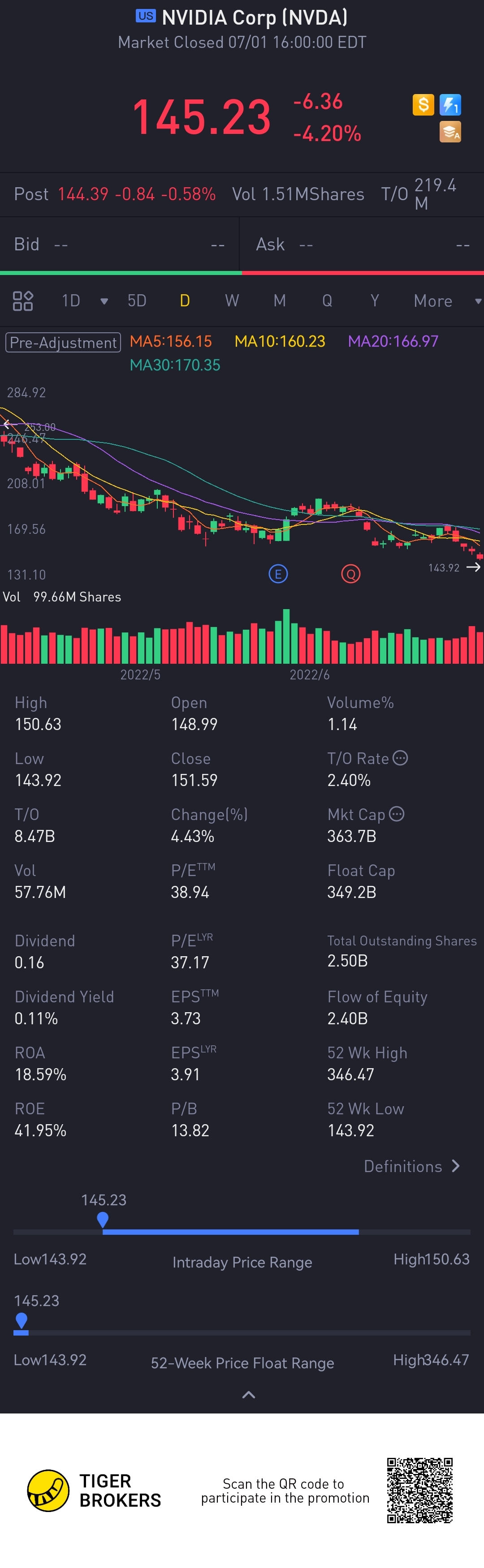 $NVIDIA Corp(NVDA)$Cant resist to current price and sold put for NVDA at 128 strike. The semicon sector has dropped approx 50% from their peak, time to slowly accumulate. $ASML Holding NV(ASML)$ and $Taiwan Semiconductor Manufacturing(TSM)$ are the next holding to be added to my portfolio.