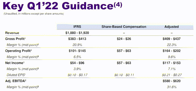 Thus, it is important to watch out for the evolution of operating expenses when the company reports financial results on Tuesday next week. For this purpose, it expects an operating profit margin of 6.5% (mid-point) in Q1-2022 as per the table below, compared to 8% in Q4-2021.