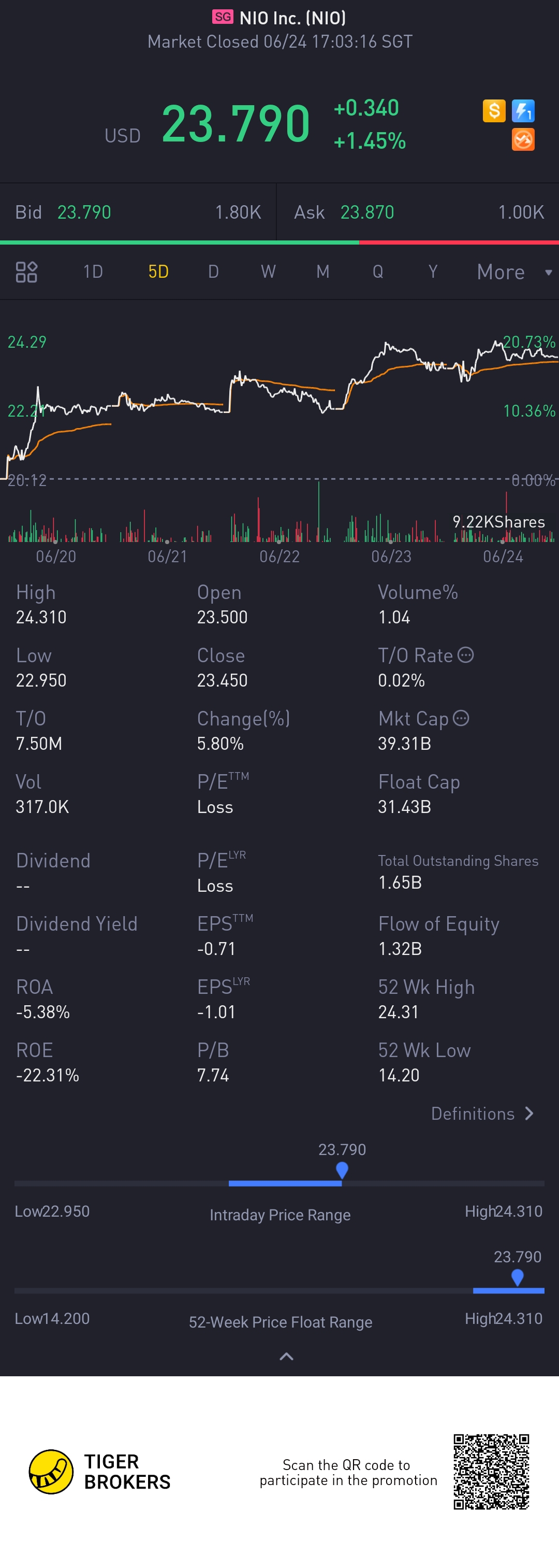 $NIO Inc.(NIO.SI)$Is it a good time to buy?