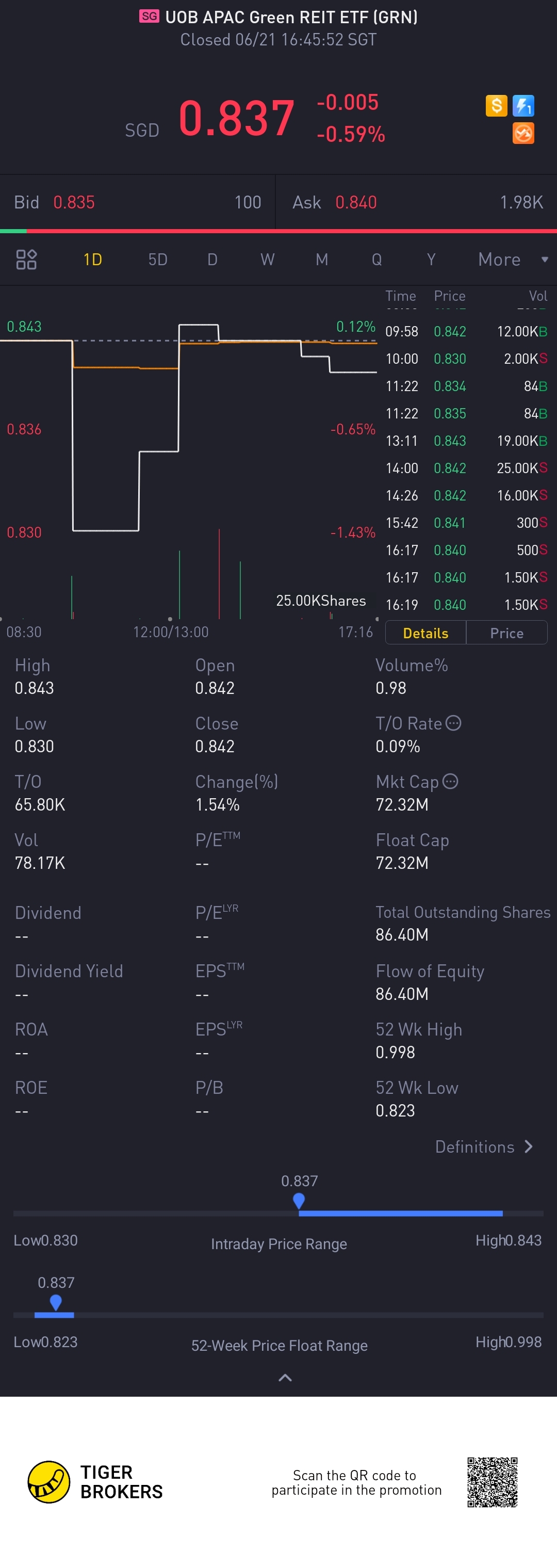 $UOB APAC Green REIT ETF(GRN.SI)$[shy]