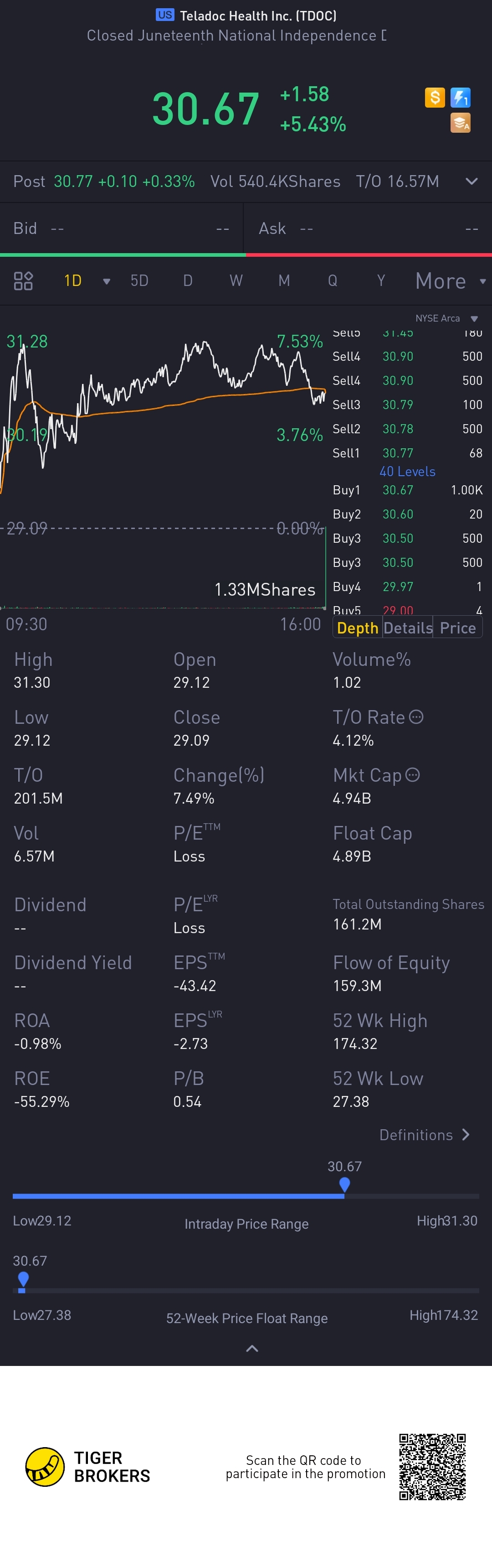 $Teladoc Health Inc.(TDOC)$beaten down growth stock require heart of steel to keep adding n believe its long term potential
