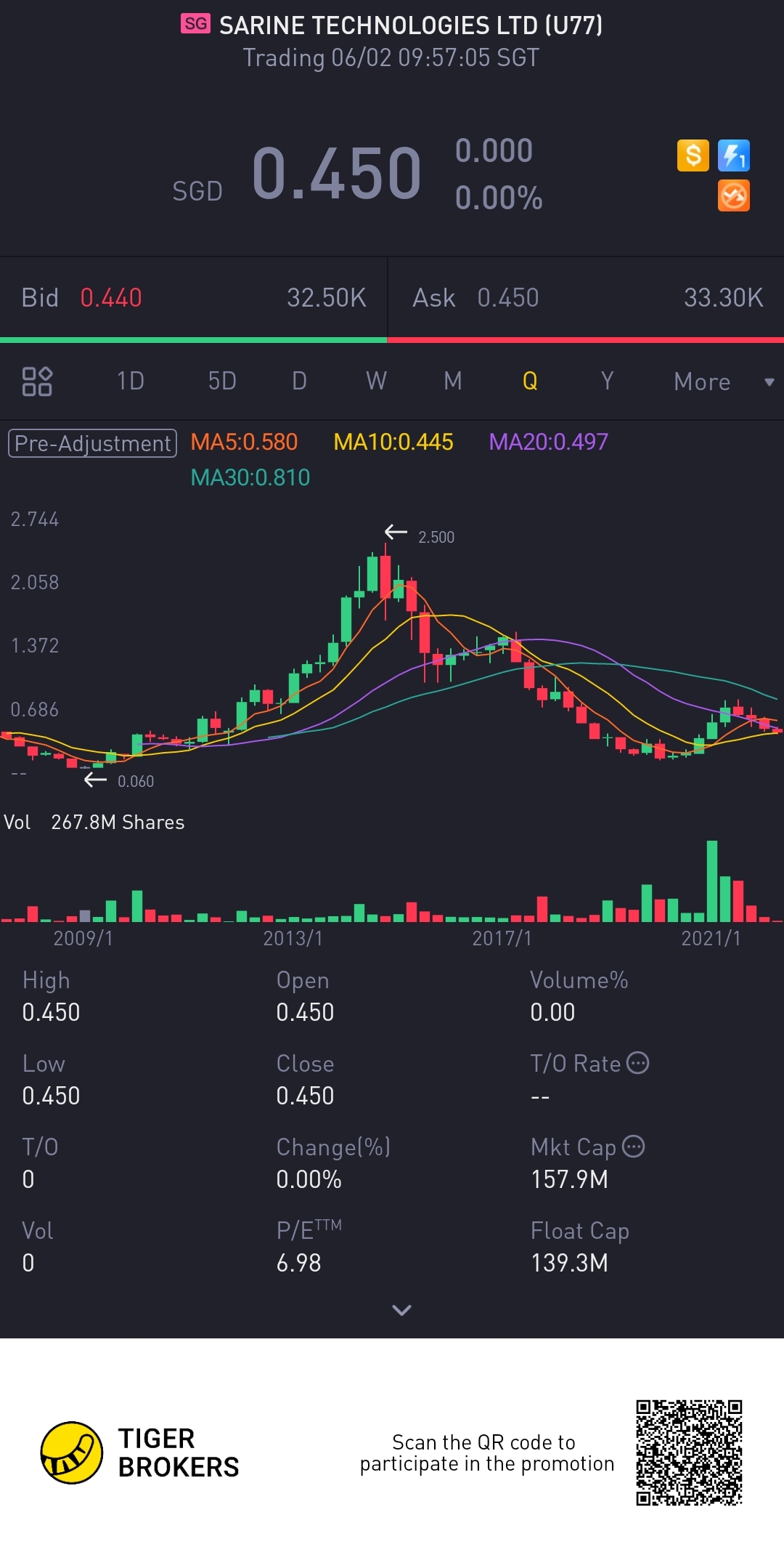 $SARINE TECHNOLOGIES LTD(U77.SI)$i like this diamond equipment provider. the price once dip to 0.22 to 0.25, the rebound is really fast in the past few cycle. but with the artificial diamond getting popular, I don't know will that effect the results of this company.
