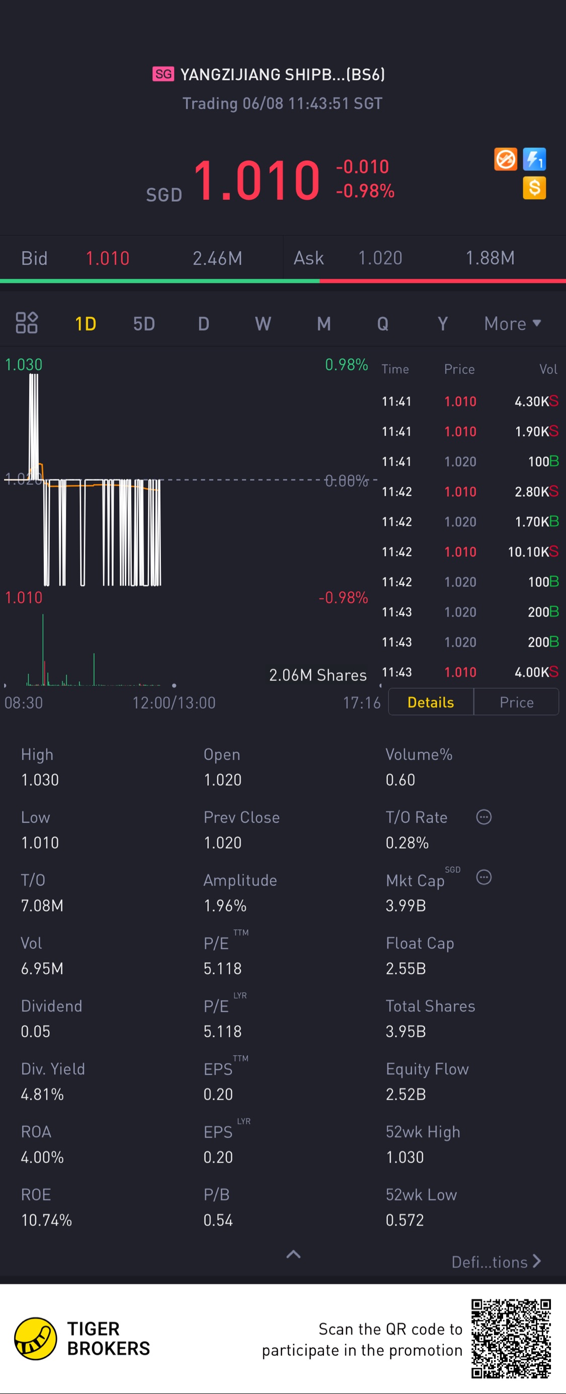 $YANGZIJIANG SHIPBLDG HLDGS LTD(BS6.SI)$Wow