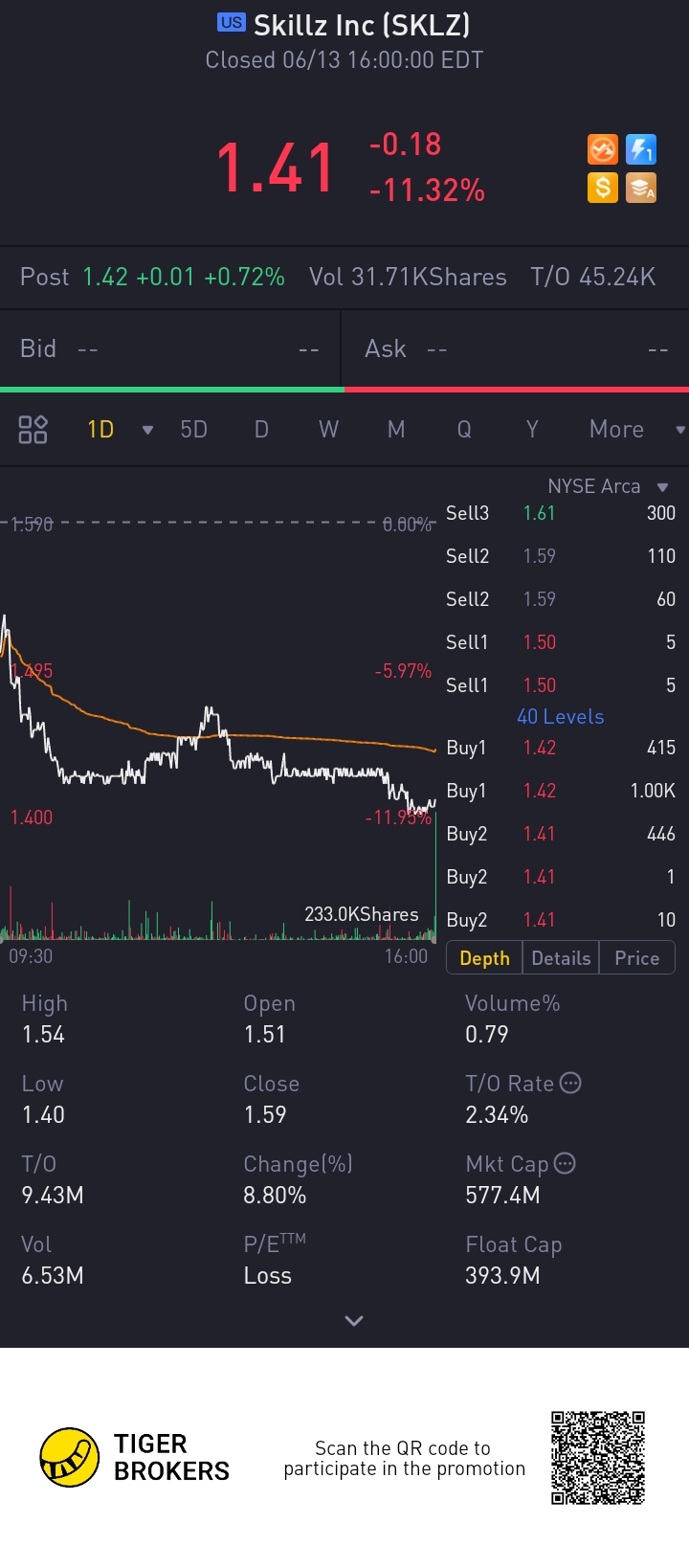 $Skillz Inc(SKLZ)$1.41