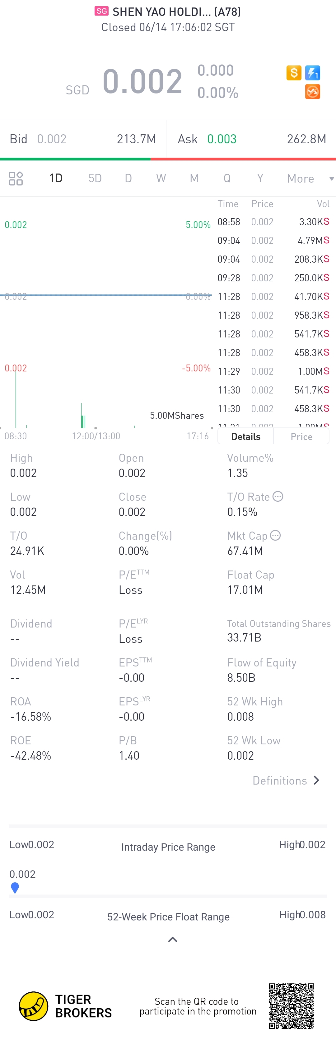 $SHEN YAO HOLDINGS LIMITED(A78.SI)$for point