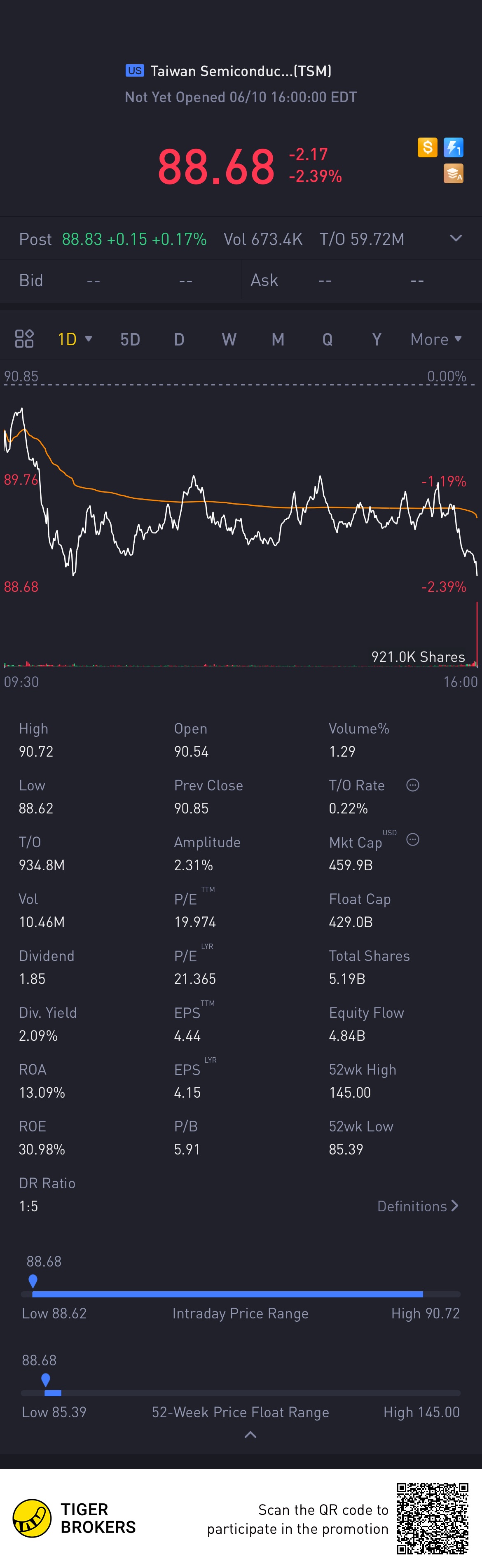 $Taiwan Semiconductor Manufacturing(TSM)$Semiconductor should be in demand but still going down. not as bad as the other sectors though