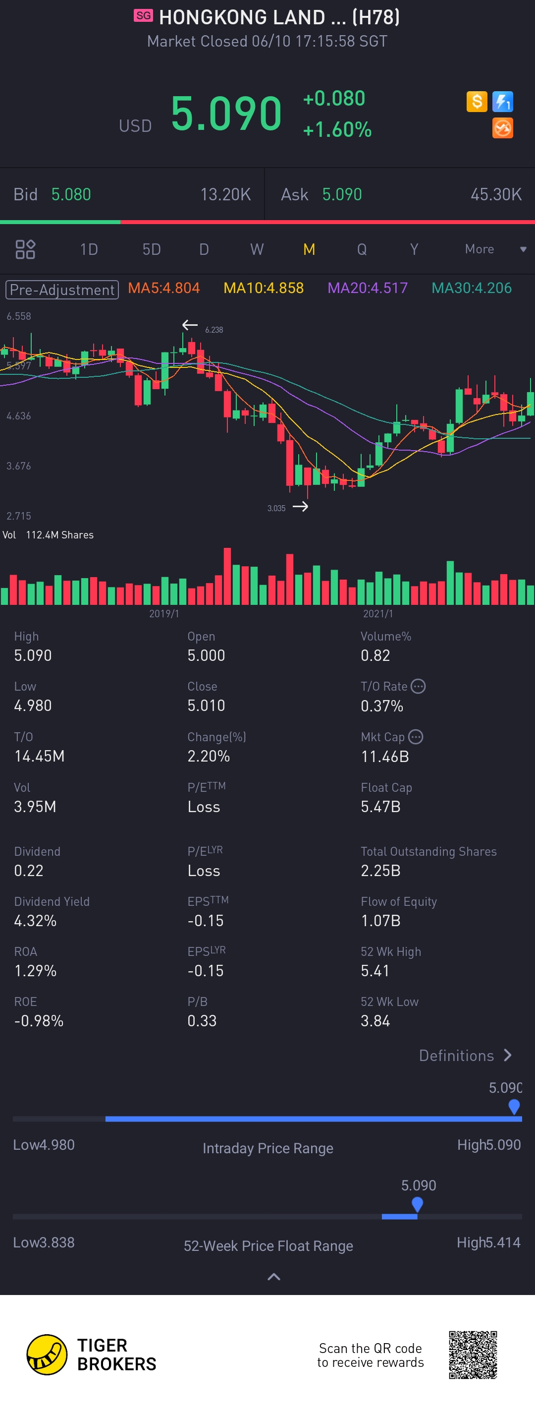 $HONGKONG LAND HOLDINGS LIMITED(H78.SI)$wow