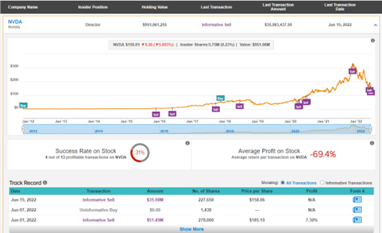 According to the TipRanks Insider Trading Tool,insiders at Nvidia have a Very Negative stanceon the stock currently based on five informative Sell transactions totaling a whopping $119.7 million over the last three months.