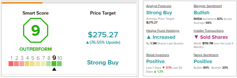 Similarly, according to the TipRanks’ Smart Score, Nvidia has a score of nine, indicating that the stock is likely to outperform the market. Likewise, bloggers and news articles are bullish on the stock, and hedge funds have increased their holdings of NVDA stock by 1.3 million shares in the last quarter. Even retail investors have increased their exposure to the stock by 1.2% in the last 30 days.