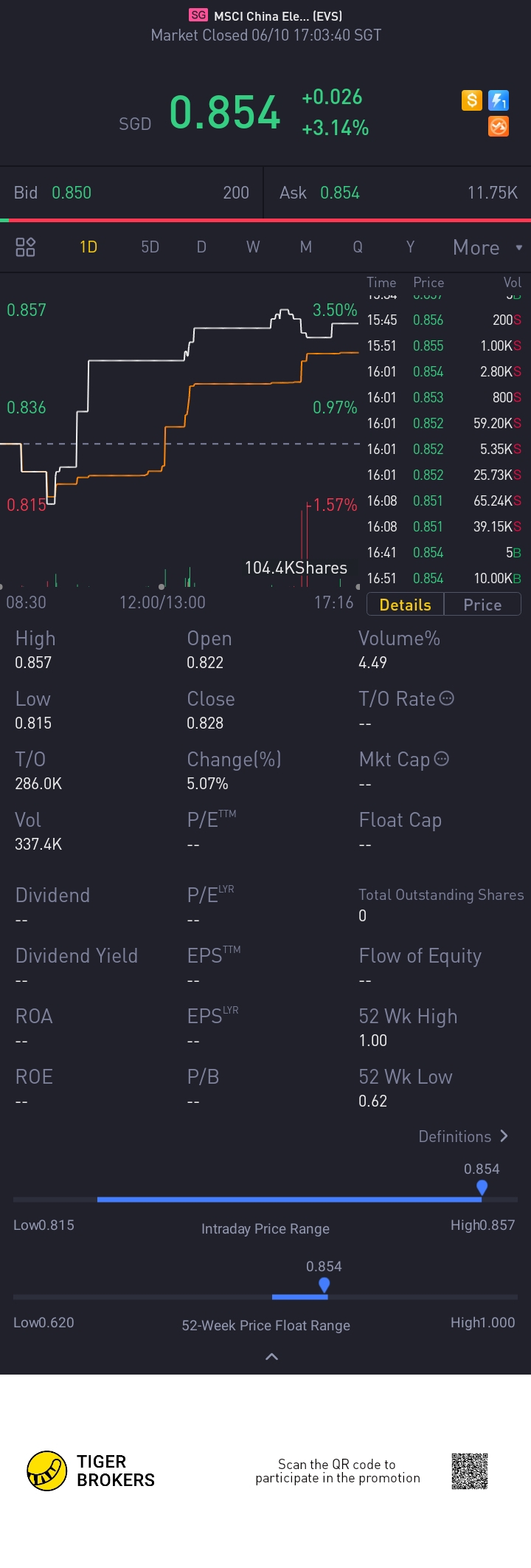 $MSCI China Electric Vehicles and Future Mobility ETF-NikkoAM(EVS.SI)$.