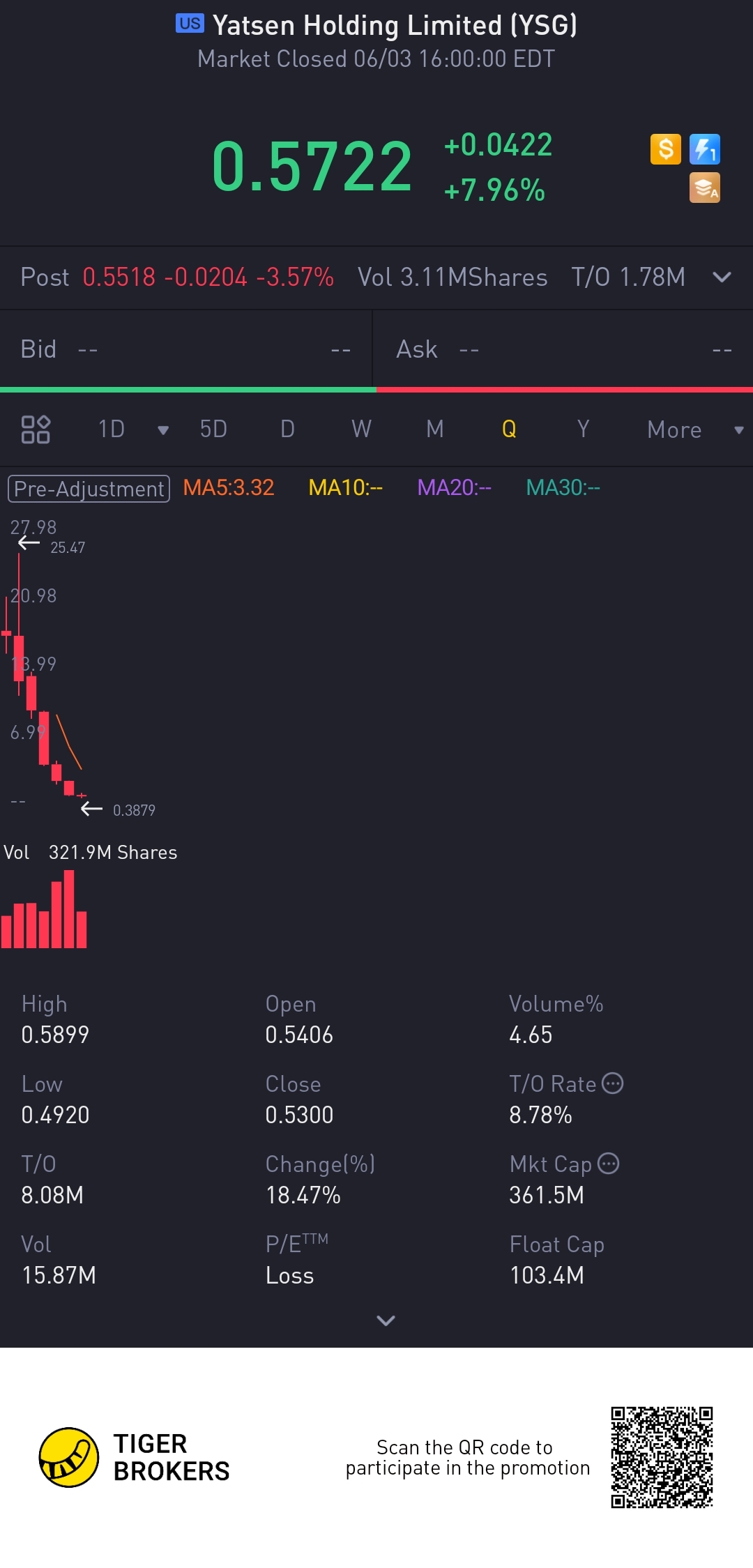 $Yatsen Holding Limited(YSG)$lucky sold of this share after heavy lost last year. bought at US$15.13 and sold at US$11.97 after more than 20% lost. Was a big mistake on this purchase