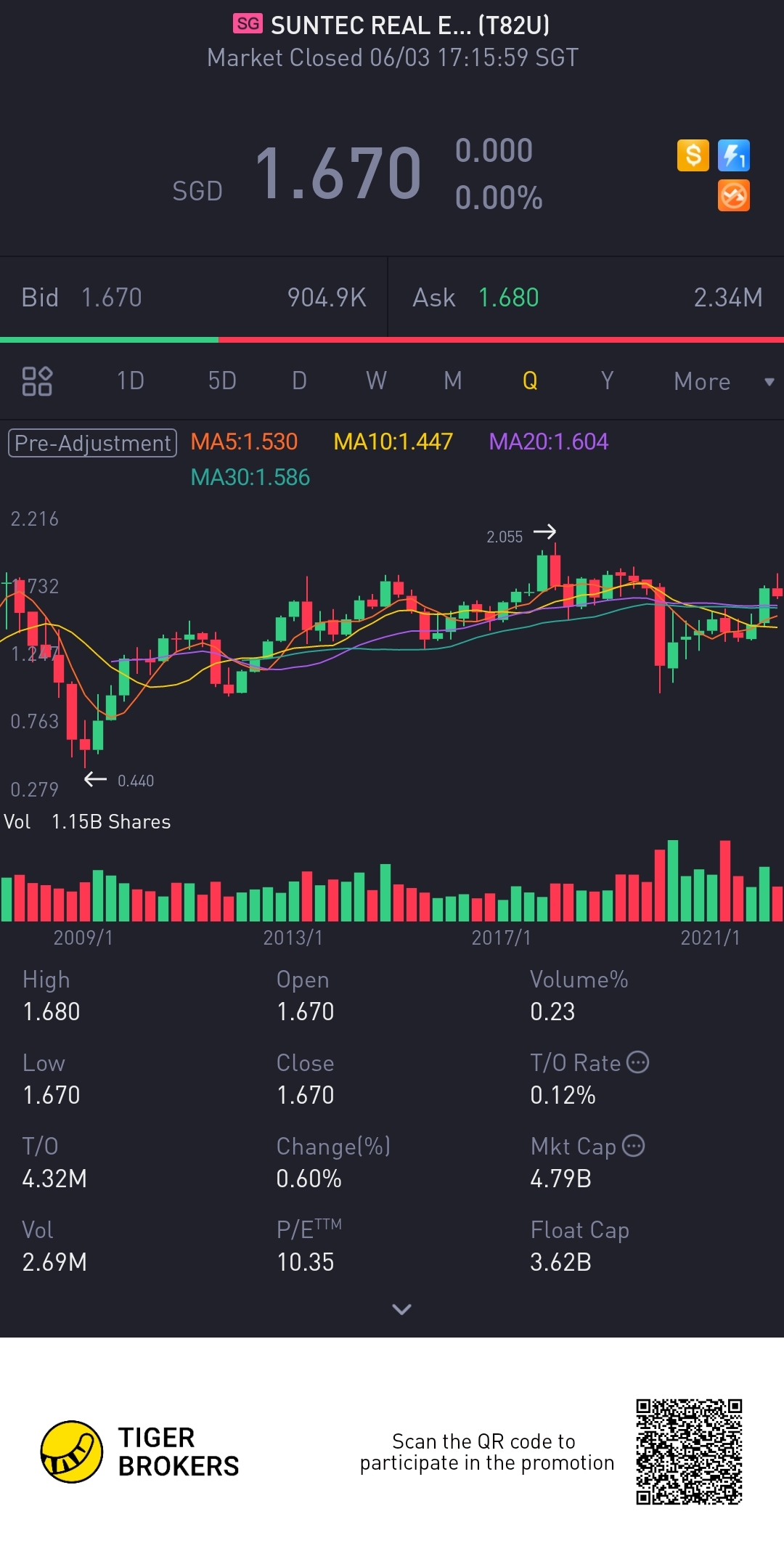 $SUNTEC REAL ESTATE INV TRUST(T82U.SI)$like this Reit, every time it reach 1.2 to 1.4, I will load up and will sell went in reach 1.80 to 1.90. And they pay good div as compared to bank interest.