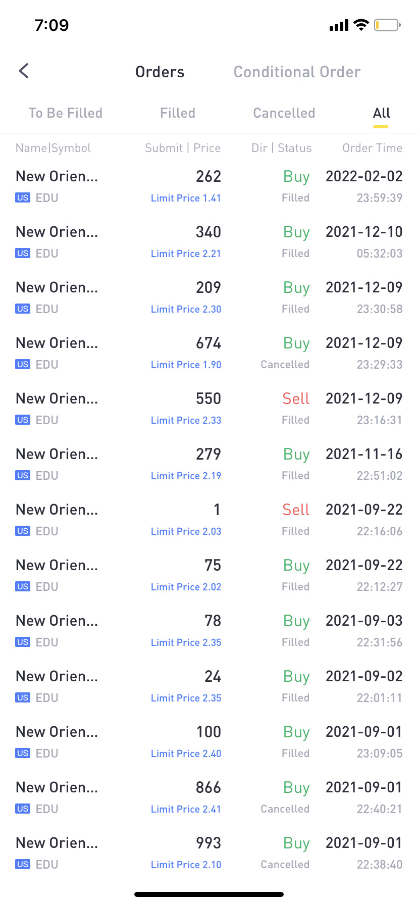 $New Oriental Education & Technology(EDU)$why my limit order and the amount different? My limit order all below 3 dollar, my average purchasebecome 10 dollar plus???