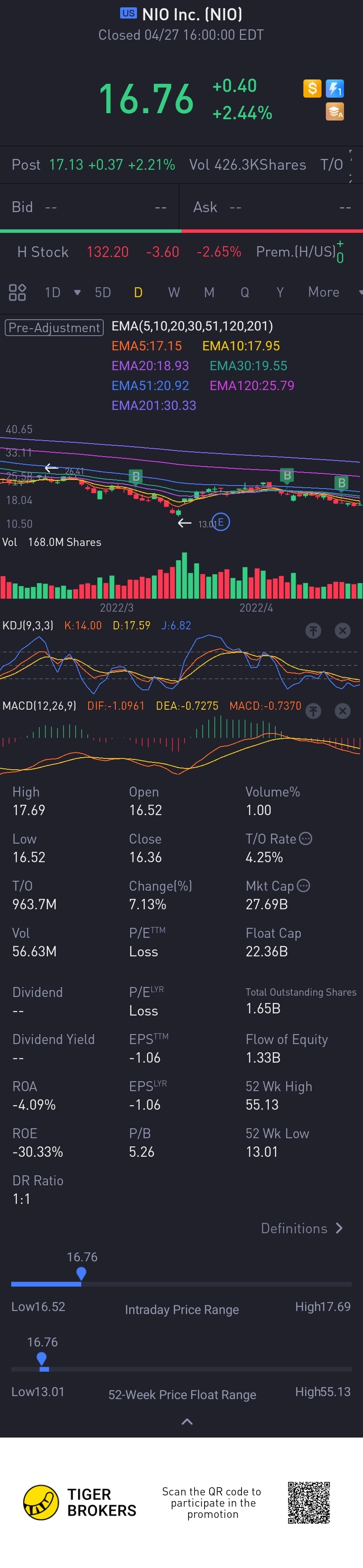 $NIO Inc.(NIO)$still with a small loss[Cool]