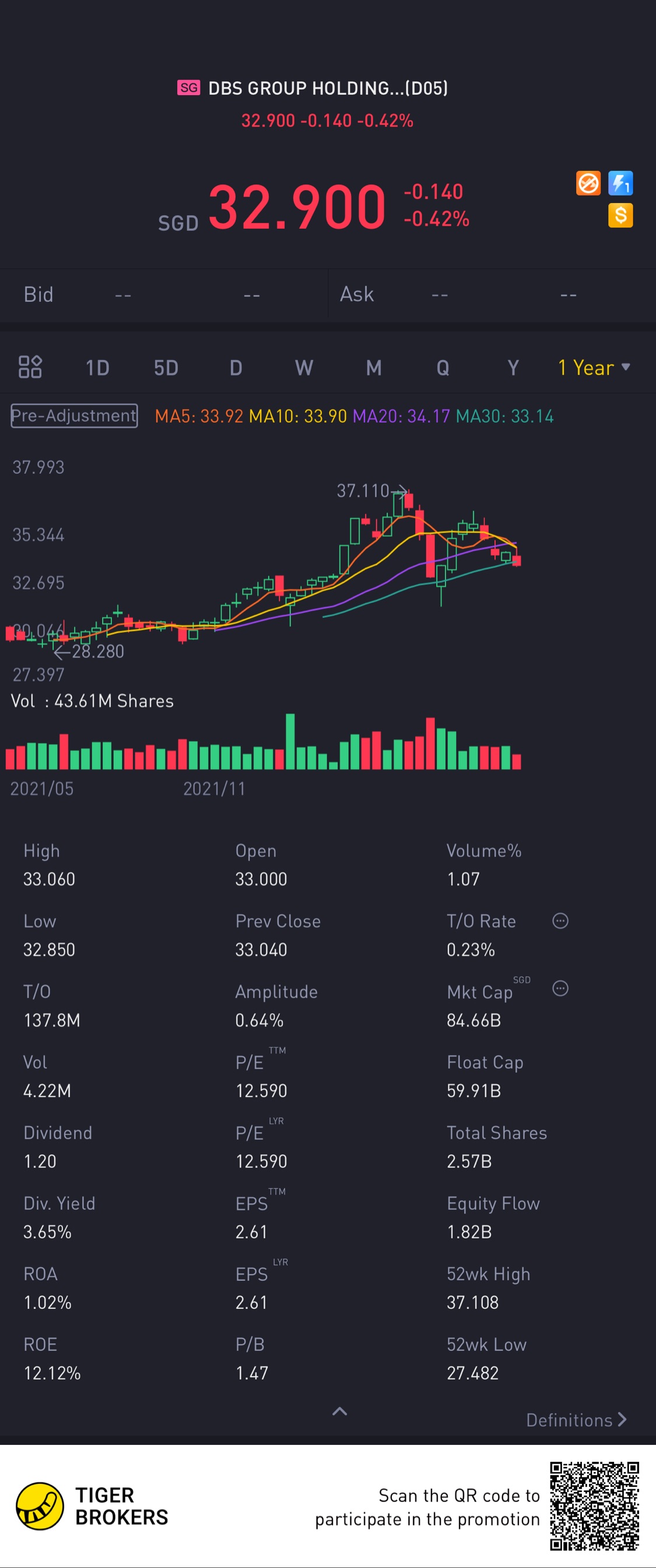 $DBS GROUP HOLDINGS LTD(D05.SI)$I think it will drop more in the next few days. Don't miss the boat.