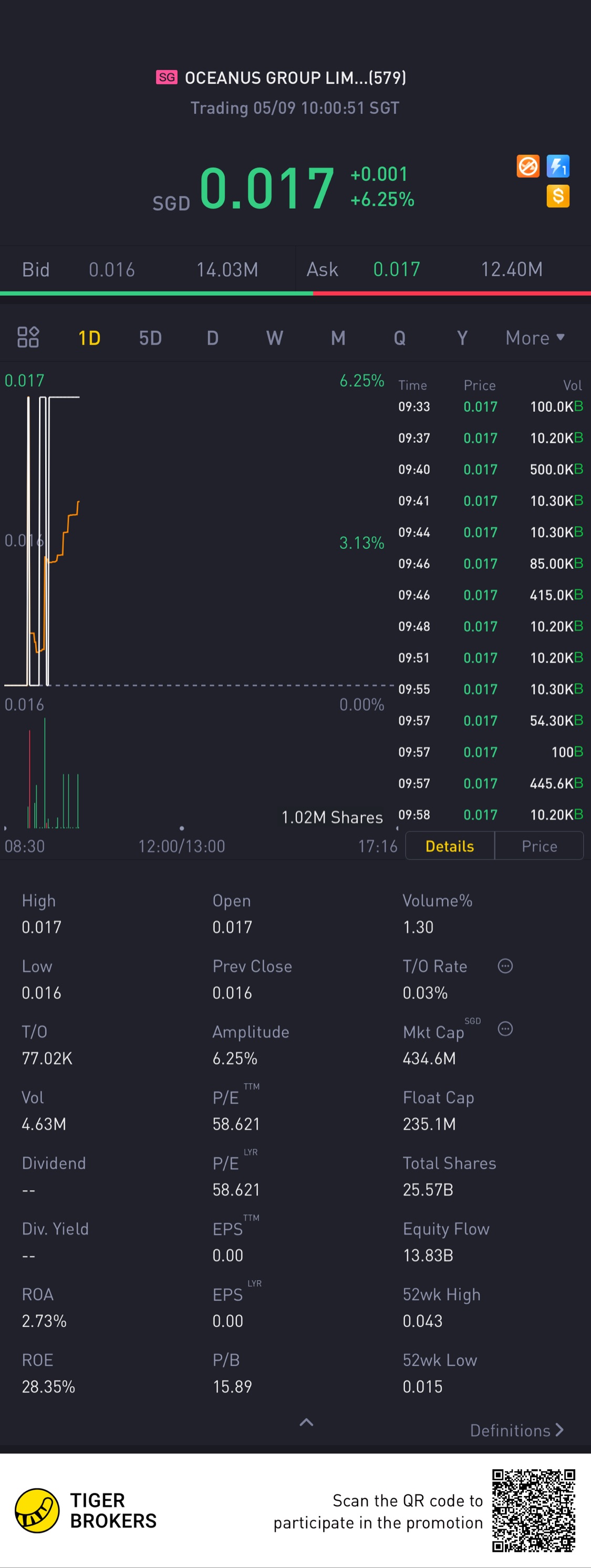 $OCEANUS GROUP LIMITED(579.SI)$Share