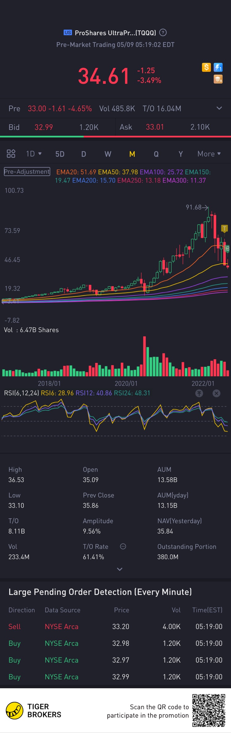 $ProShares UltraPro QQQ(TQQQ)$As of earlier May, TQQQ is reported to have a huge inflow of approximately 27,400,000 units bought in a week. Interesting that so many investors continue to dip buy into TQQQ.