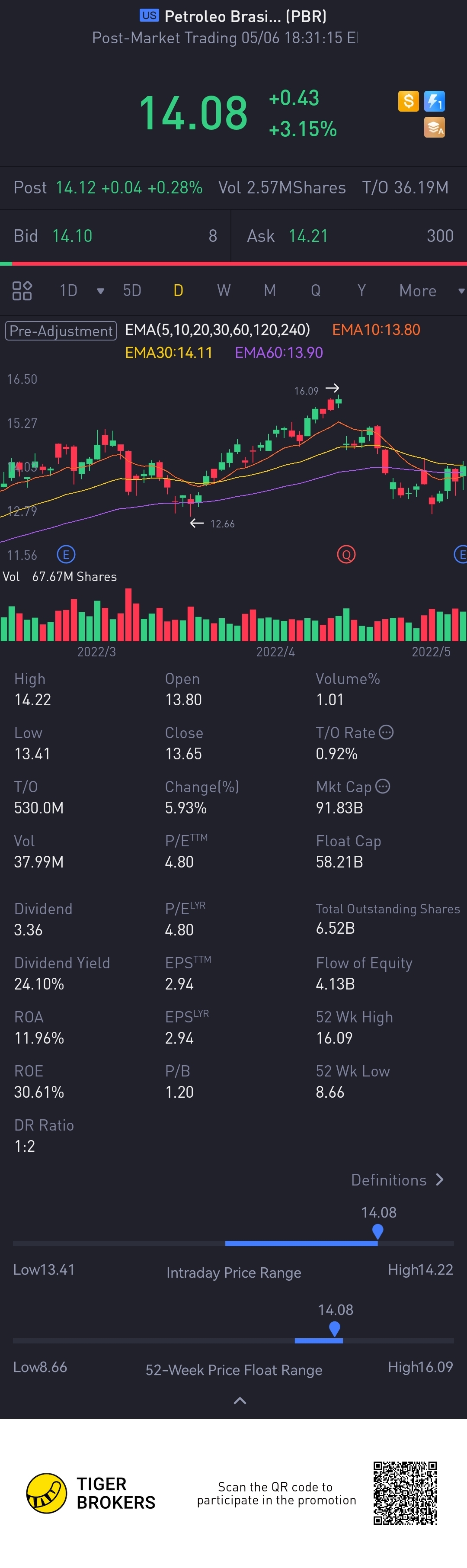 $Petroleo Brasileiro SA Petrobras(PBR)$ massive dividend this quarter of $1.3. Making dividend yield 40%??