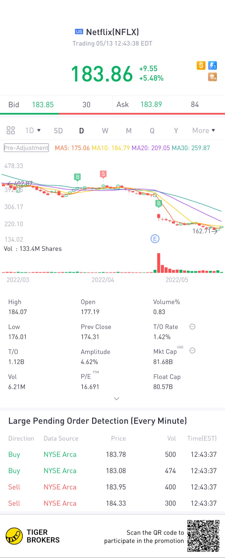 $Netflix(NFLX)$Finally crawling back up after dropping like a shorting star