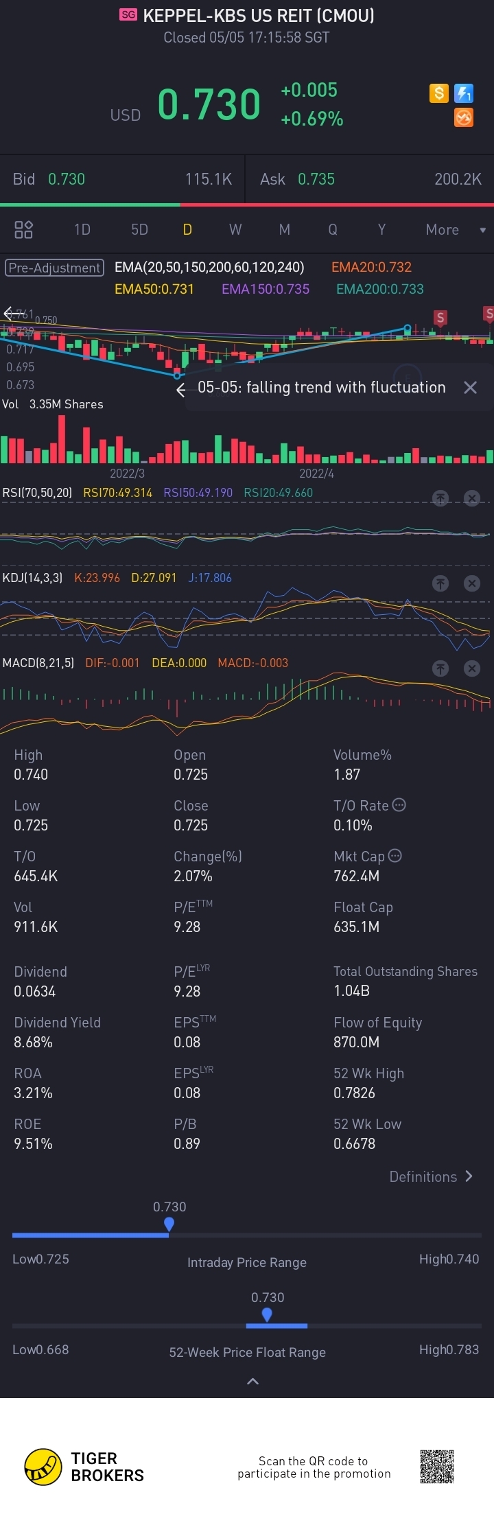 $KEPPEL-KBS US REIT(CMOU.SI)$sold today to invest in US shares. Waiting for the MSFT and AMZN to dip.