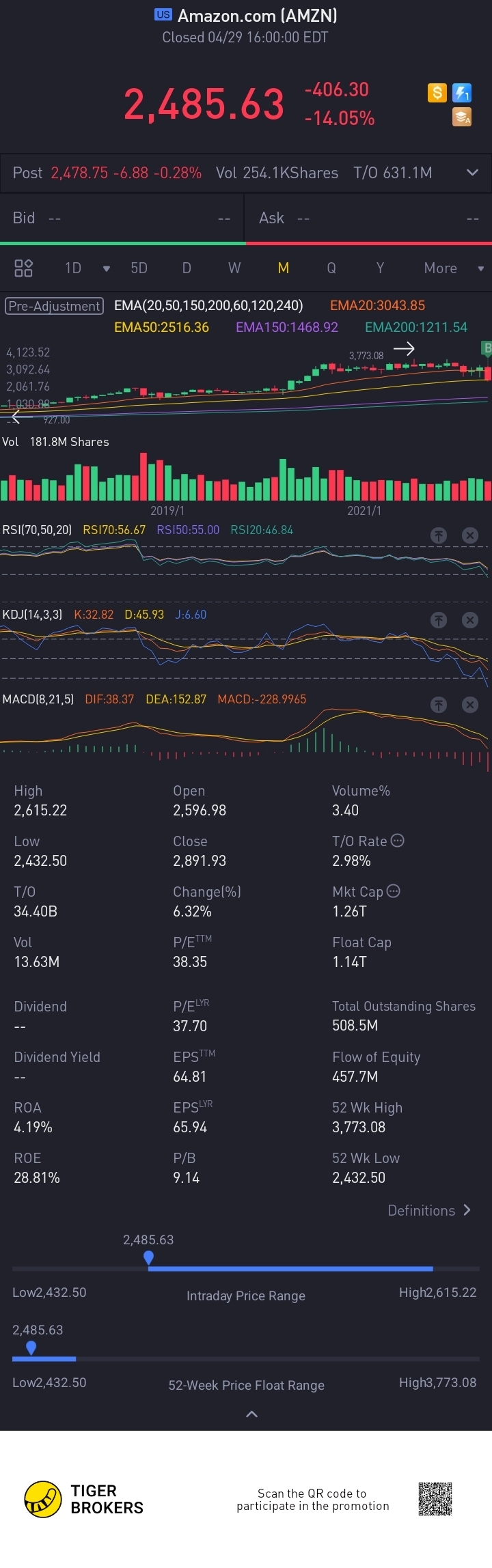 $Amazon.com(AMZN)$entered a small position last night when its price fell. Let's see. Amazon is still a great business despite this temporary headwinds.