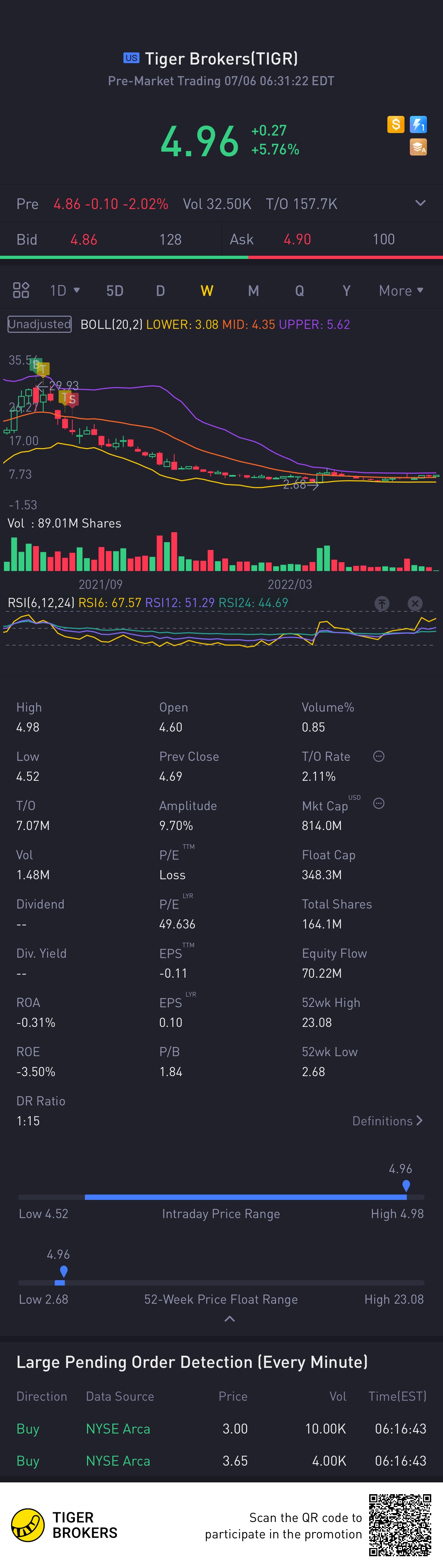 $Tiger Brokers(TIGR)$Long time maintaining above 4 $