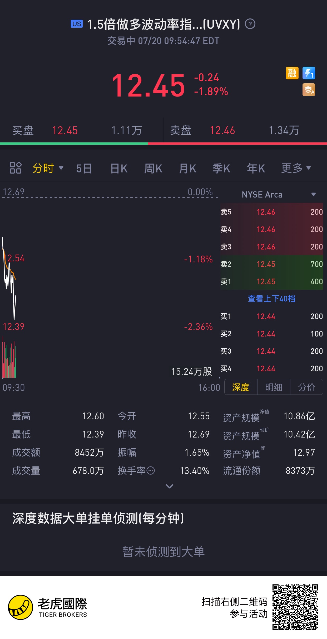 $1.5倍做多波动率指数短期期货ETF-ProShares(UVXY)$k