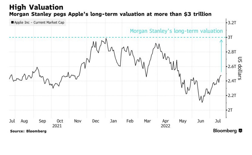"While the market still tends to value the iPhone maker as a hardware company, shifting to a “lifetime value” based approach -- which takes into account recurring revenues from services -- suggests long-term upside to over $200 per share, or more than $3 trillion in market value, Morgan Stanley analysts wrote in a note. Apple shares closed at $153 on Wednesday."