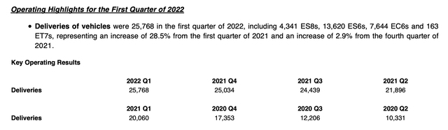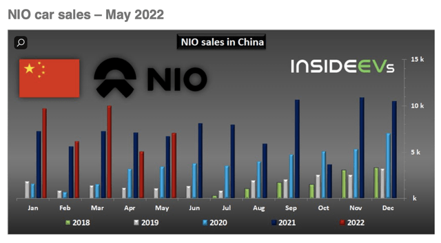 We see the poor YOY performance in April and May as China struggled with the COVID pandemic. However, the authority has made significant progress in battling the virus. Therefore, NIO's sales should see a healthy increase in the coming months. Generally, excluding the pandemic-induced slowdown, we see a healthy trend in Nio's sales.