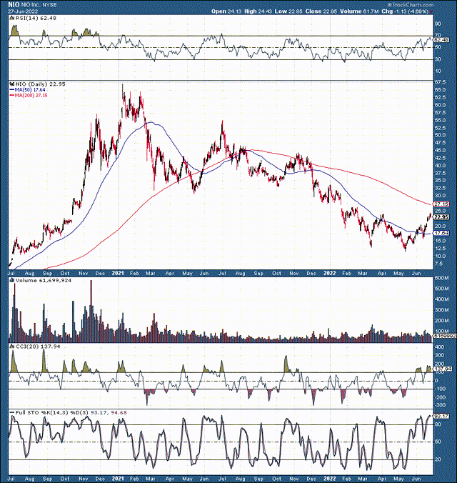 - NIO has been one of the worst-hit stocks during the selloff, dropping by 82% from its highs at one point.