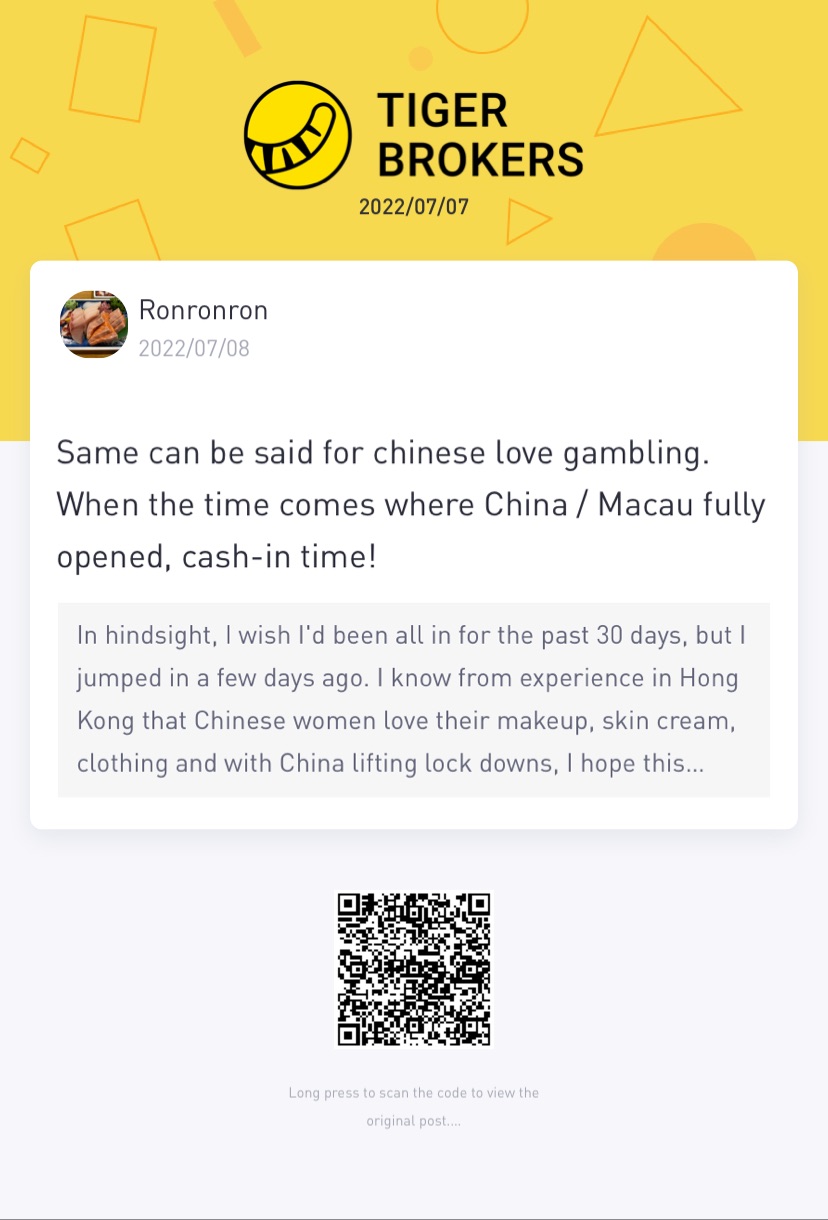 Same can be said for chinese love gambling. When the time comes where China / Macau fully opened, cash-in time!