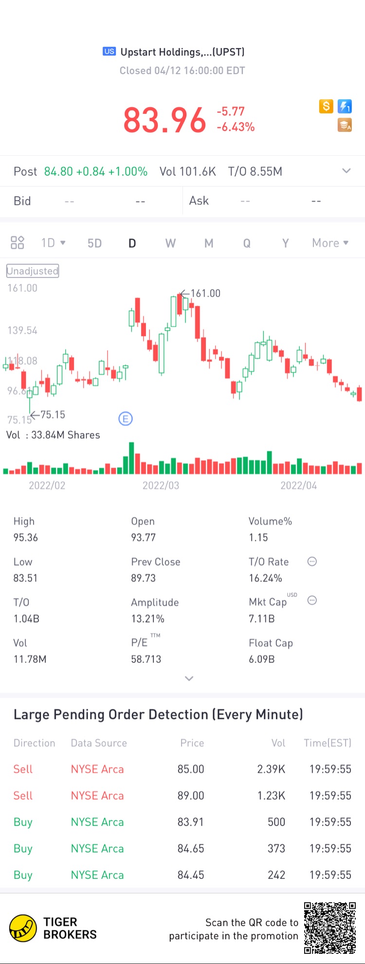 $Upstart Holdings, Inc.(UPST)$Looks like there might be a dip coming if next trading day doesn'thold