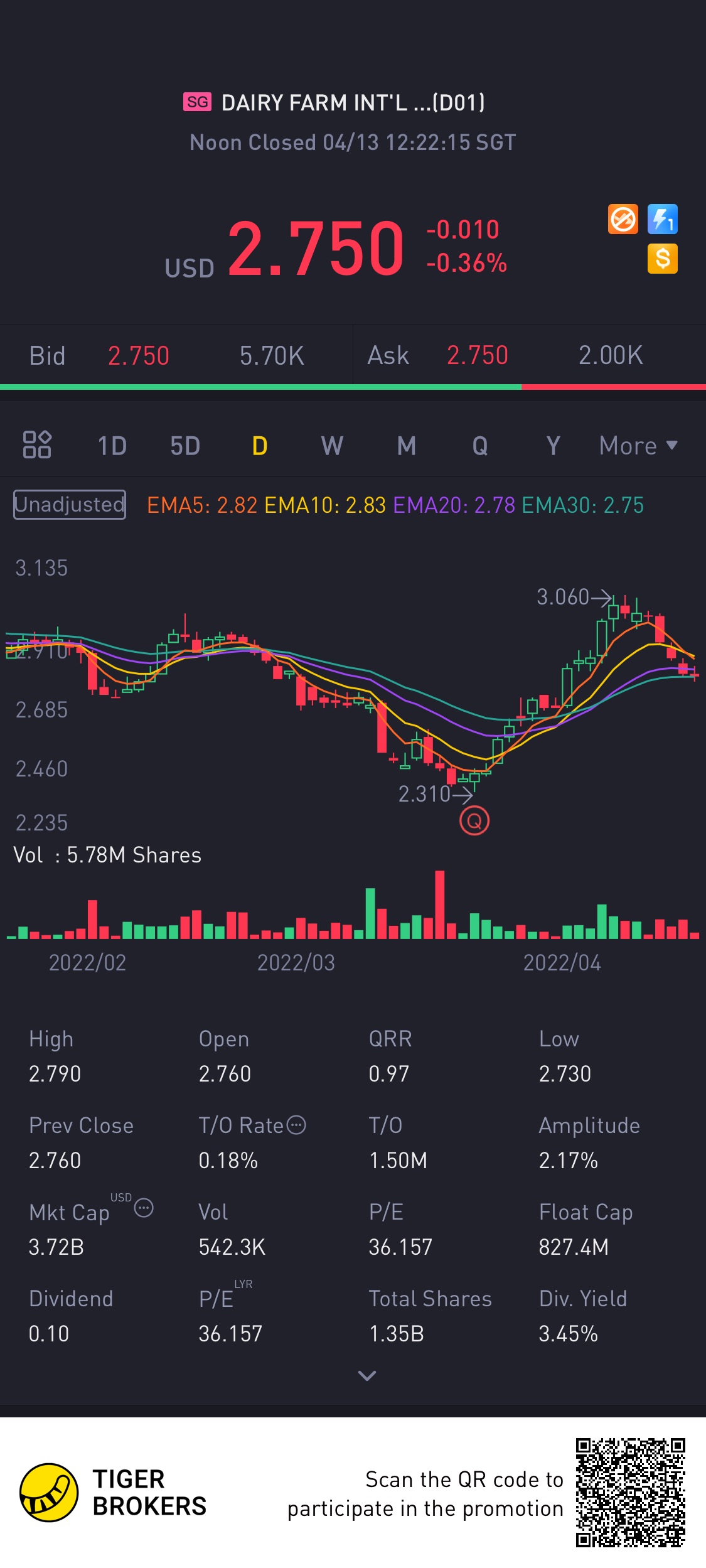 $DAIRY FARM INT'L HOLDINGS LTD(D01.SI)$Will it go down ?