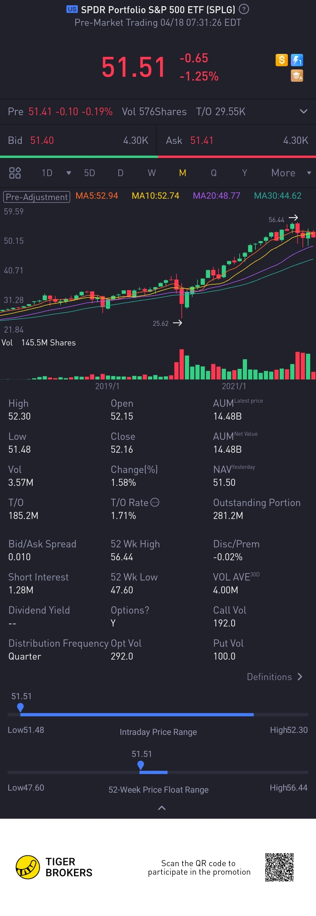 $SPDR Portfolio S&P 500 ETF(SPLG)$🙂🙃