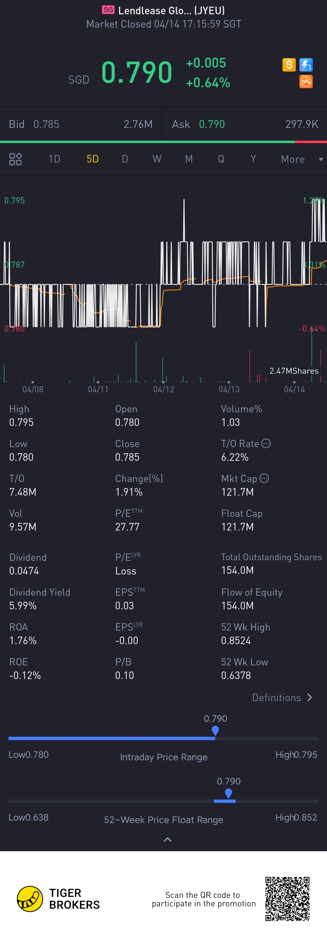 $Lendlease Global Commercial REIT(JYEU.SI)$daily