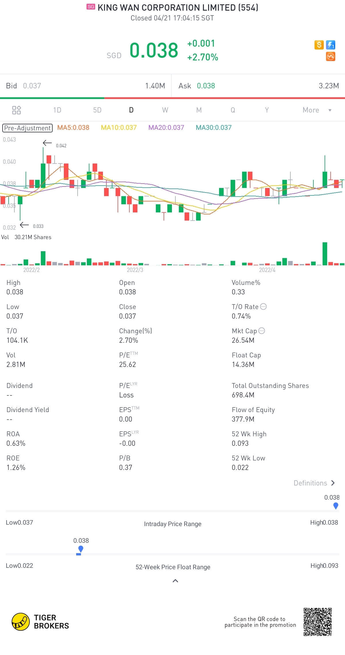 $KING WAN CORPORATION LIMITED(554.SI)$ok