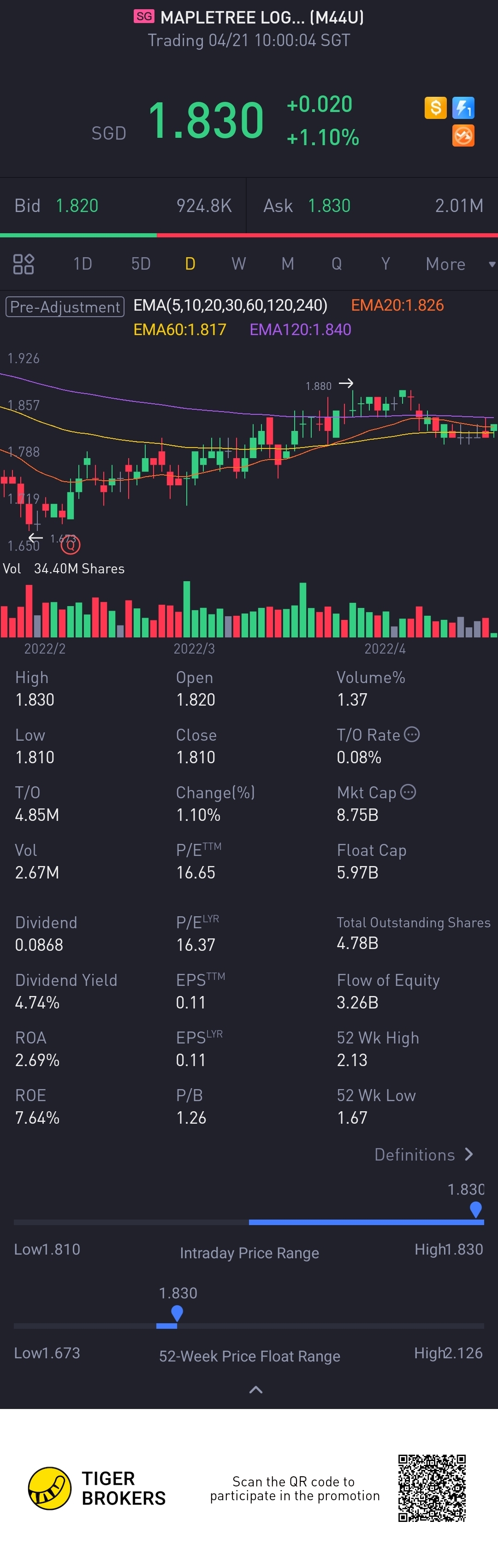 $MAPLETREE LOGISTICS TRUST(M44U.SI)$Share for coins.