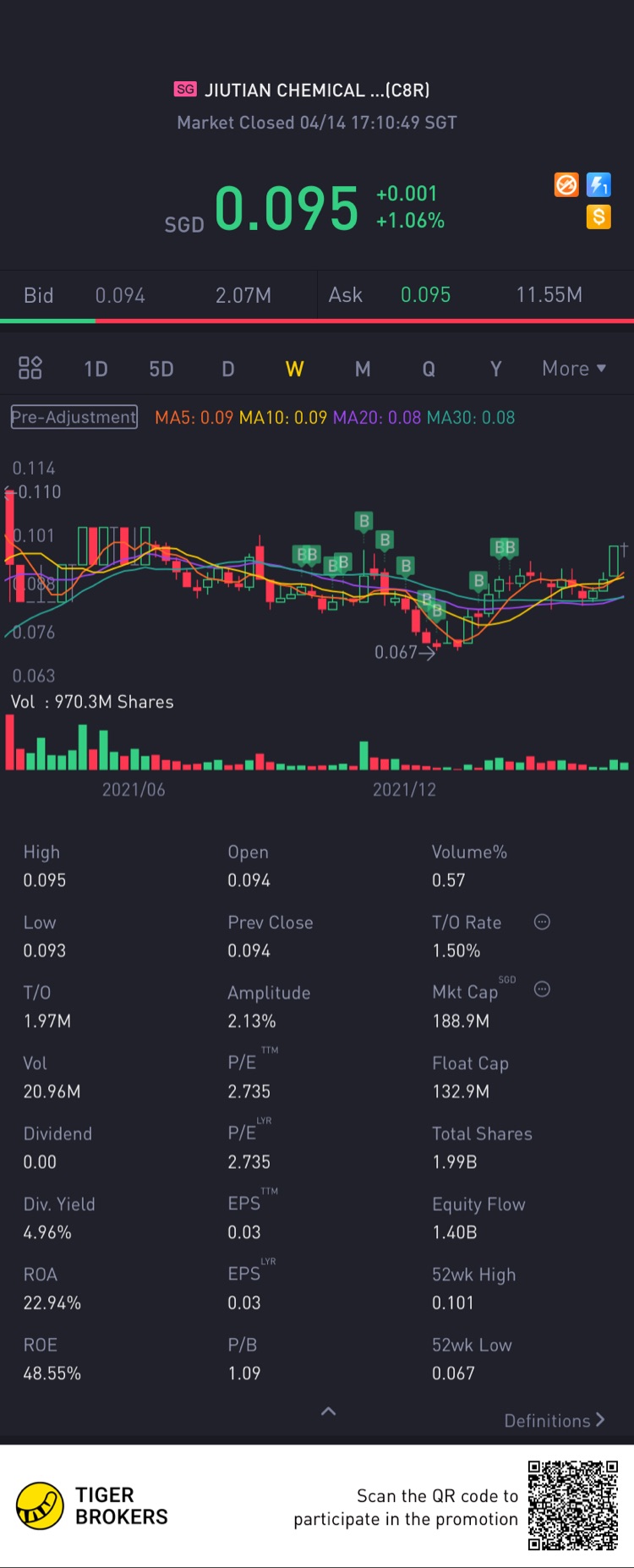 $JIUTIAN CHEMICAL GROUP LIMITED(C8R.SI)$Happy[Happy]