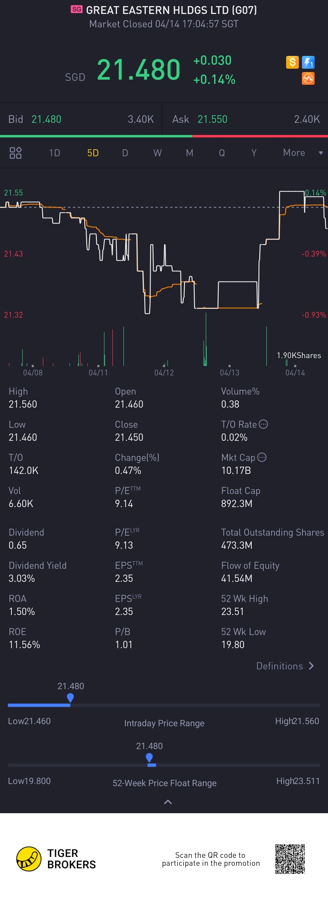 $GREAT EASTERN HLDGS LTD(G07.SI)$ to the east!