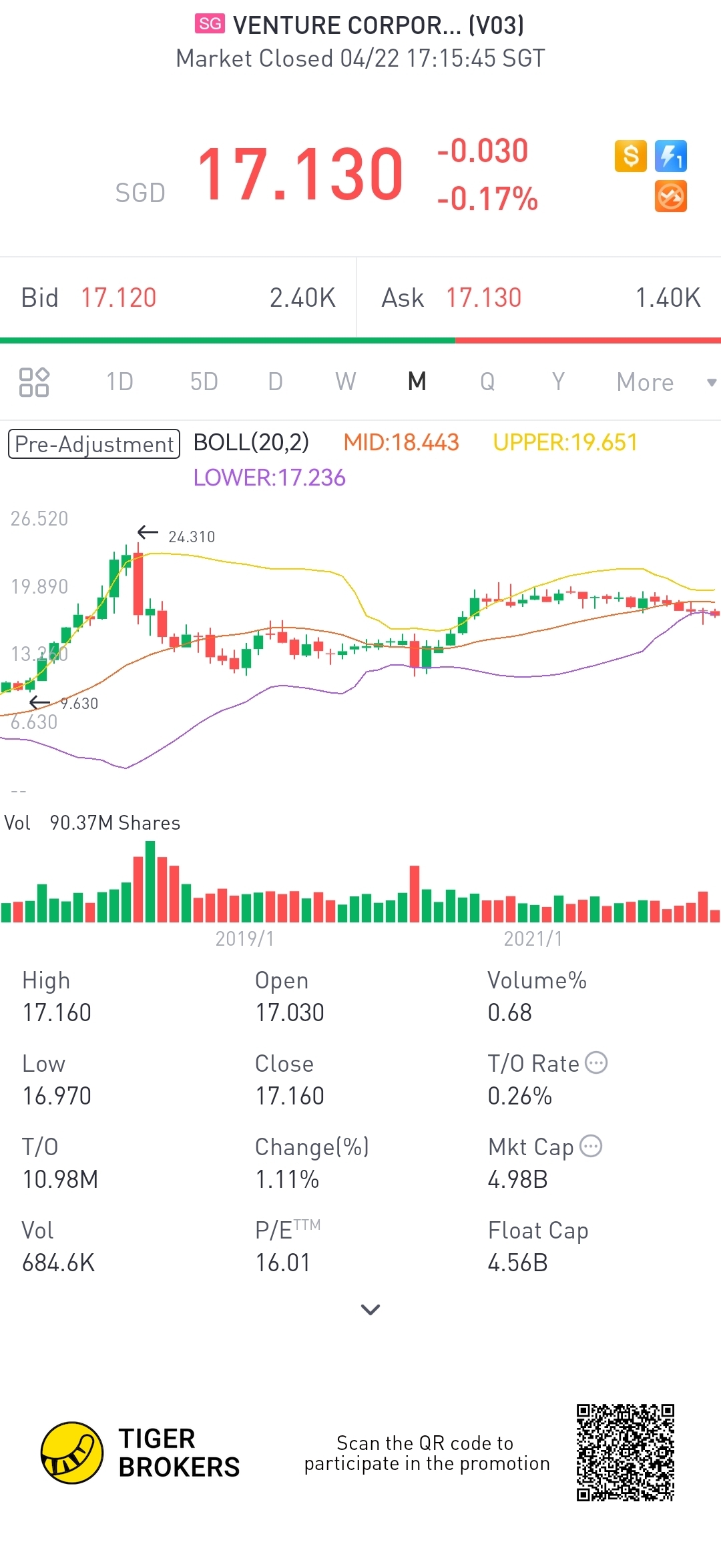 $VENTURE CORPORATION LIMITED(V03.SI)$ sideways finding bottom