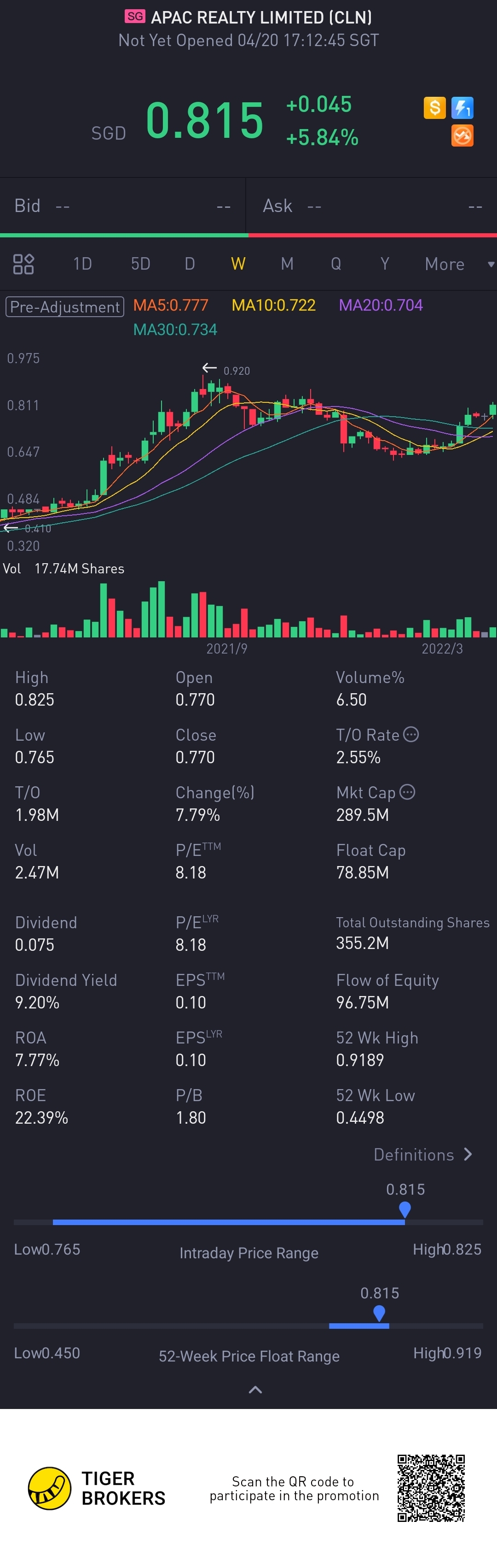$APAC REALTY LIMITED(CLN.SI)$ exposure to property with good dividend