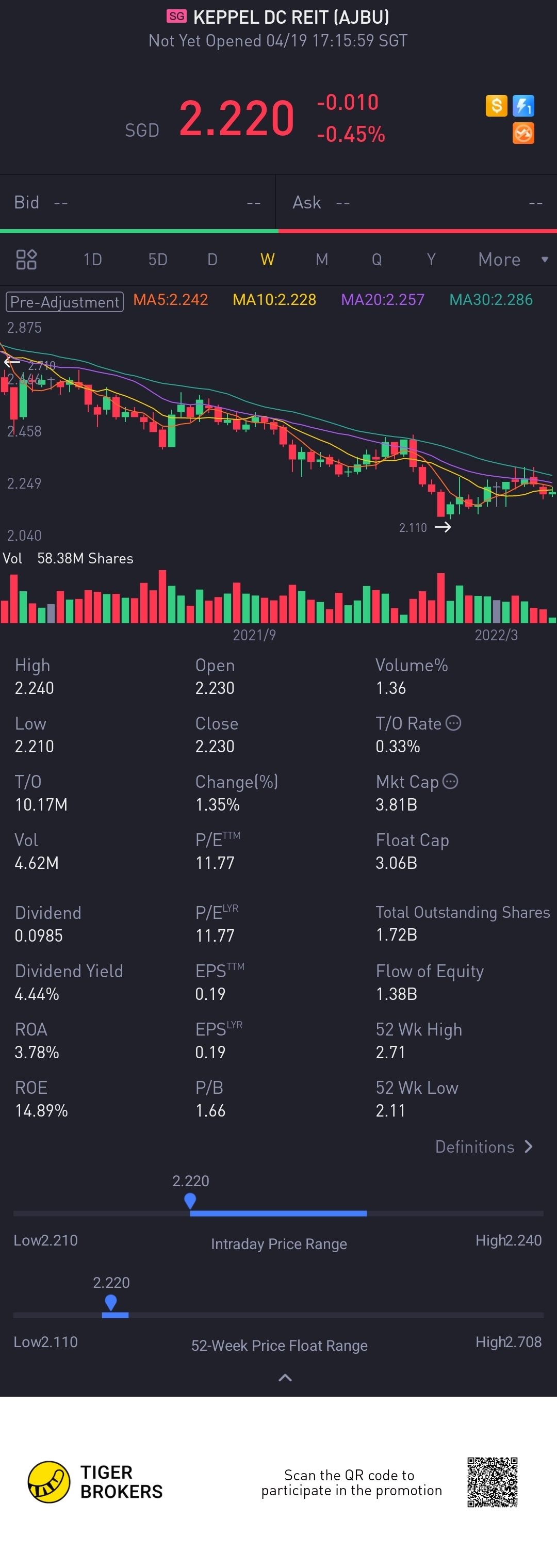 $KEPPEL DC REIT(AJBU.SI)$Debt vs electricity cost.. which will prevail? Let's see the price action today.