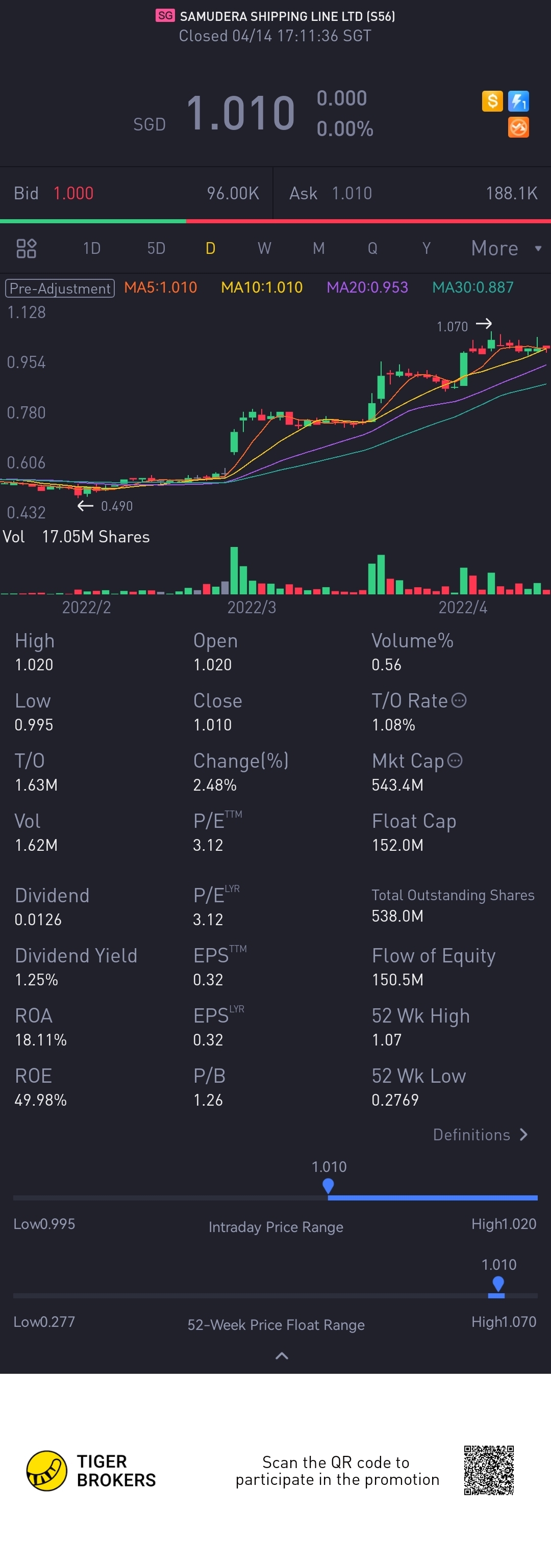 $SAMUDERA SHIPPING LINE LTD(S56.SI)$ good run!!